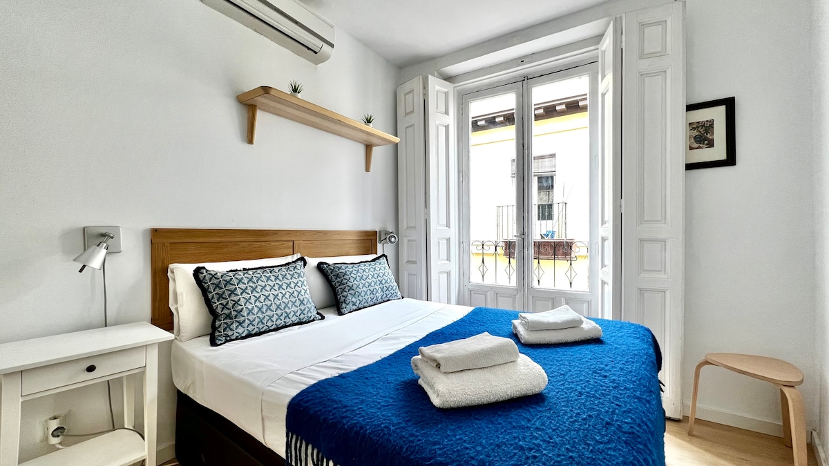 Accogliente e luminoso appartamento con una camera da letto con letto matrimoniale (1,4 m), un soggiorno con angolo cottura e un ampio bagno con vasca; dotato di frigorifero, forno a microonde, lavatrice, piano cottura in ceramica, TV nel soggiorno, wifi e un DIVANO LETTO matrimoniale. Ottima posizione, in un incantevole quartiere nel cuore del centro di Madrid, diversità di commercio, musei e ottima offerta gastronomica, a 10 min. dalla stazione di Atocha, a 15 min. dalla Puerta del Sol, a 7 min. dal Museo del Prado e a 12 min. dal Parque del Retiro.