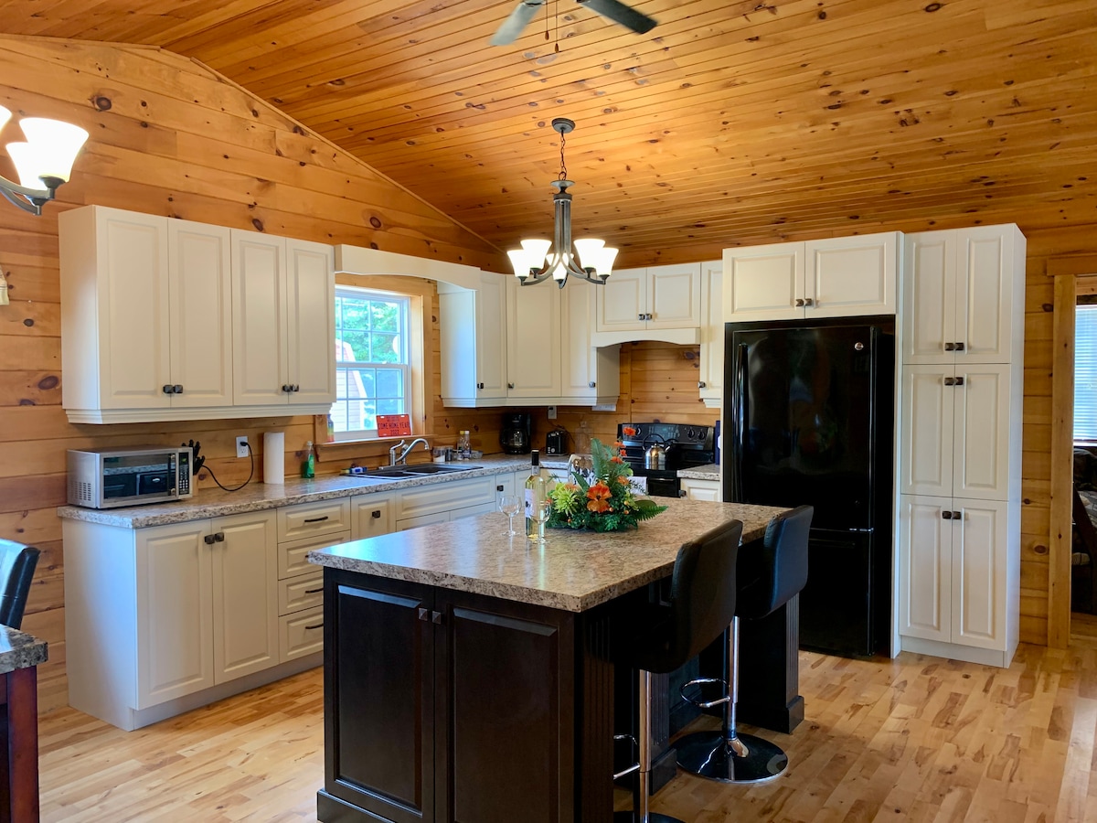Rilassati con tutta la famiglia nel nostro bungalow completamente ristrutturato. Abbiamo aggiunto molte nuove caratteristiche senza perdere il carattere dell'edificio con le sue bellissime pareti in legno di pino. Svegliati con la vista sulla baia e goditi la colazione sul patio coperto di Waters Edge. C'è una cucina completa con tutto il necessario per cucinare un pasto. C'è una lavatrice/asciugatrice, wi fi e televisione con prime video e YouTube ecc.