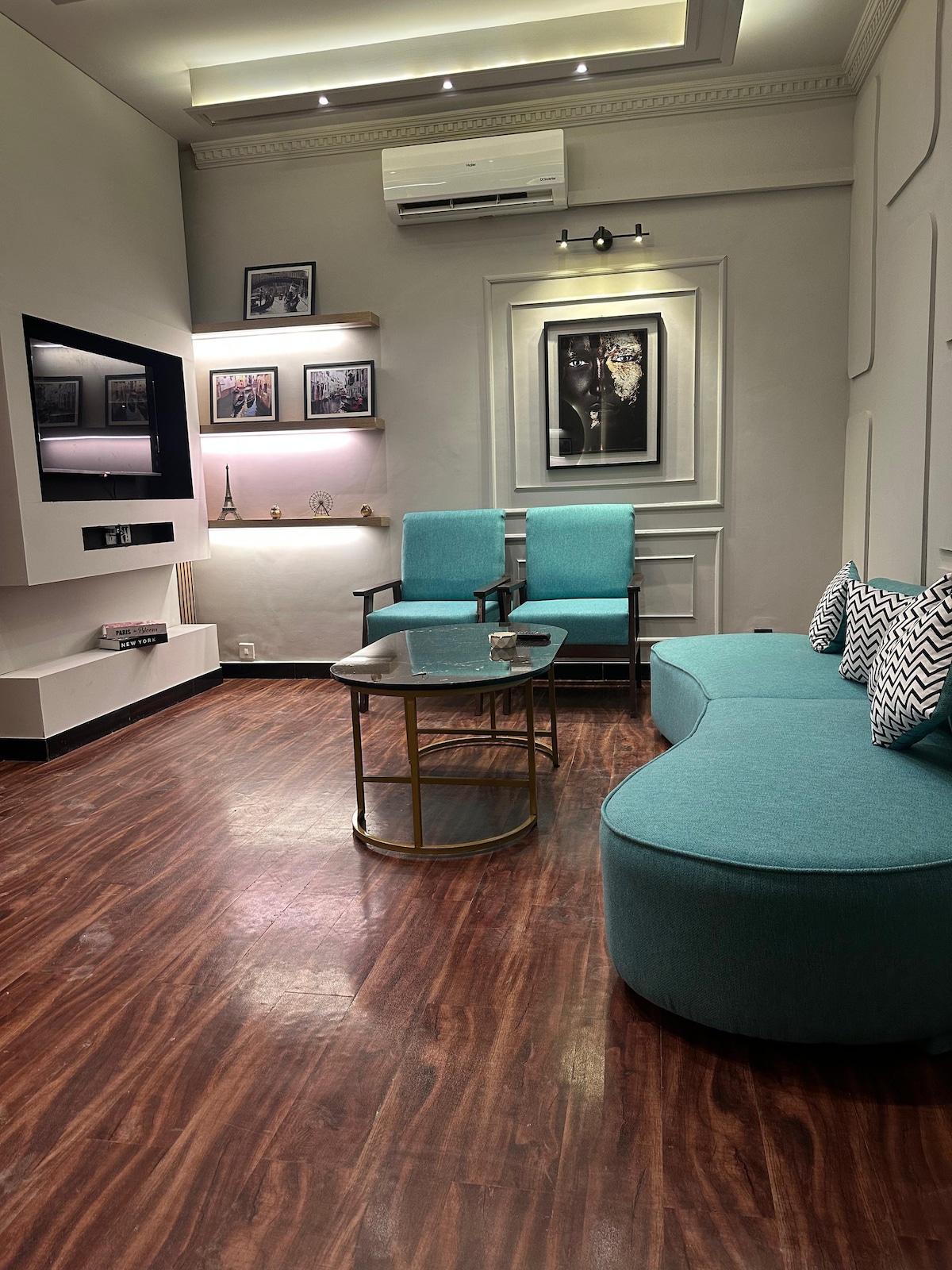 Entra negli appartamenti con 3 camere da letto di Flamingo Grand, gli appartamenti con servizi più sofisticati ed esteticamente emozionanti di Islamabad. Goditi una vacanza all'insegna della sicurezza e dello stile in questo spazio in centro. Che tu stia visitando Islamabad per piacere o per lavoro, noi di Flamingo ti assicuriamo un'esperienza a 5 stelle. Gli ospiti godono inoltre di un parcheggio gratuito e sicuro, di connessione wifi gratuita e di un televisore smart LED da 65 pollici per guardare le loro serie TV preferite.