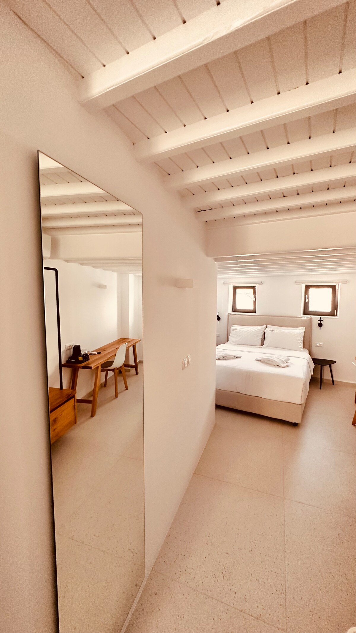 Benvenuti a The Rock City "Amber", la tua tranquilla vacanza a Mykonos. Uno spazio minimale ma accogliente con elementi in legno naturale, due comodi letti, bagno privato, self check-in e una rilassante area piscina condivisa. Perfetto per coppie o amici in cerca di tranquillità, stile e facile accesso alle spiagge e alla vita notturna dell'isola. Goditi una mattinata tranquilla in veranda, prendi il sole delle Cicladi a bordo piscina e torna in una stanza accogliente e luminosa progettata per il riposo e la semplicità. La tua vacanza su un'isola inizia qui.