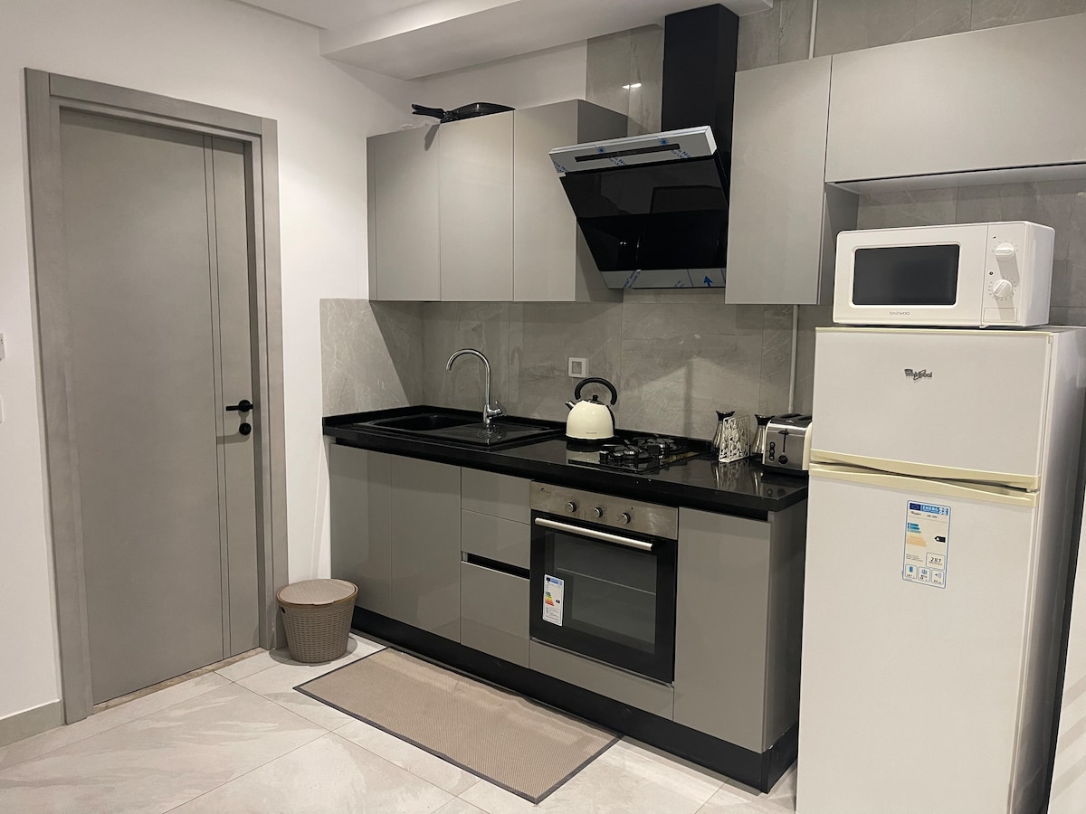 🏖 In affitto un grazioso S+1 nuovo ad AFH Mrezga, Hammamet Nord 🏖 A 500 m dalla spiaggia di Deux Oued, ideale per un soggiorno in famiglia. 🛋 Composto da: Soggiorno con angolo cottura attrezzato Balcone con vista parziale sul mare Camera con ampio spogliatoio + balcone (lavatrice Samsung) Bagno all'italiana 2 condizionatori + riscaldamento centralizzato 📺 Dotazioni: TV QLED 50" Fibra ottica (50 MB) Parcheggio sotterraneo custodito Piscina comune 👨👩👦 Capacità: 2 persone – Solo famiglie