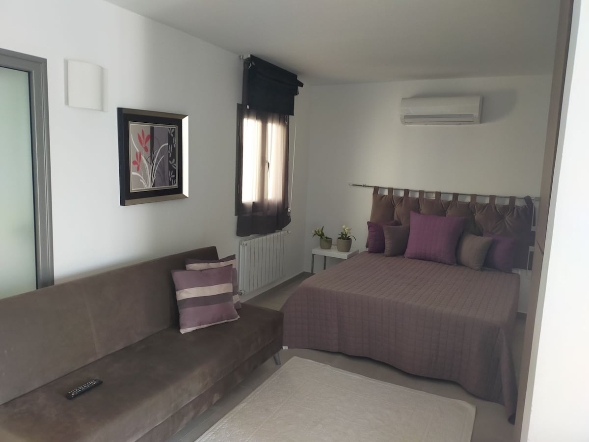 Il loft si trova in una tranquilla zona residenziale a 1 minuto a piedi dalla spiaggia con ombrellone privato. È stato appena costruito. C'è una camera da letto con un letto matrimoniale e una poltrona letto 1 posto, un bagno con doccia e una grande terrazza dove si trova una cucina ben attrezzata e riparata. Mobili da giardino e un grande ombrellone e una spa a bolle. Il viaggiatore ha accesso diretto alla spiaggia. Nota: la spa è disponibile a partire dal 15 maggio.