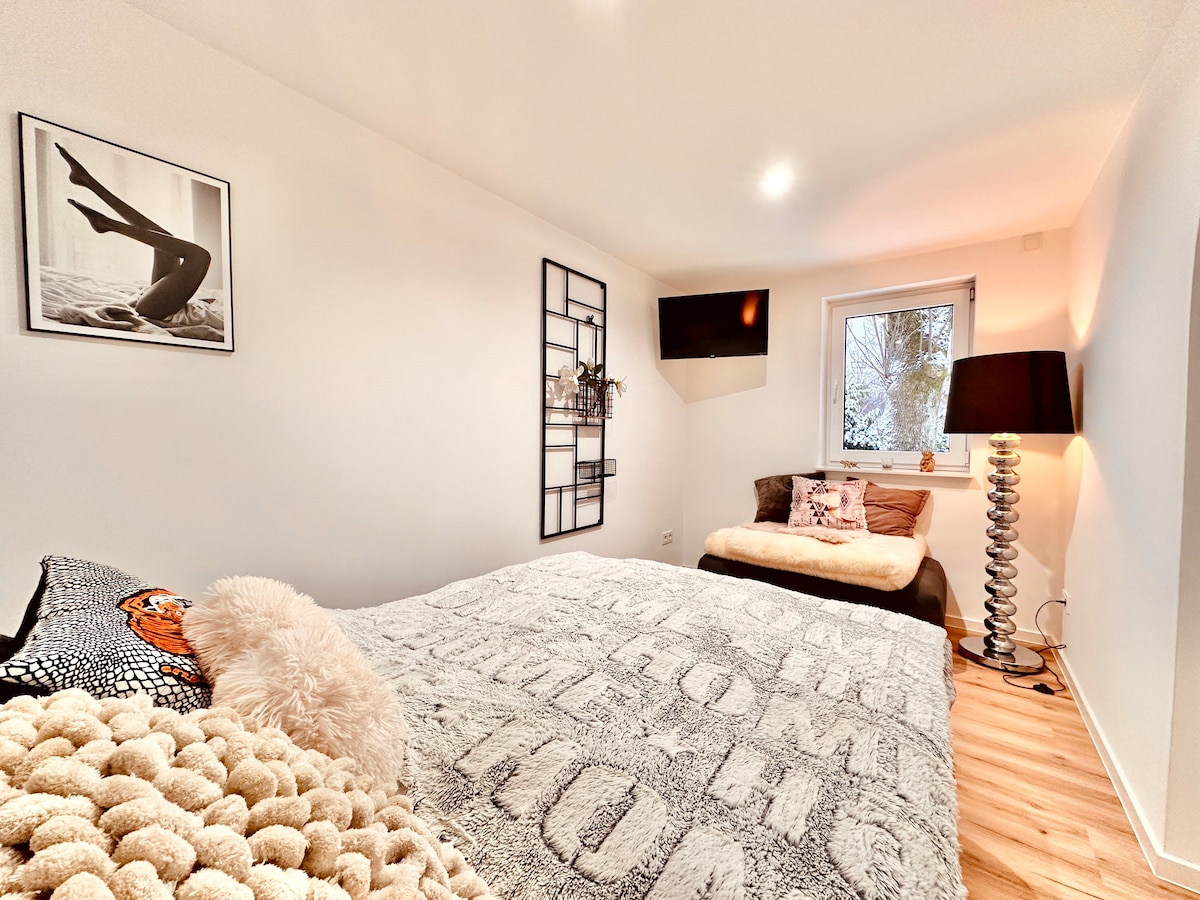 Benvenuti nel nostro esclusivo appartamento con tre camere luminose e sauna! Godetevi il lussuoso bagno con una cabina doccia con soffione a pioggia. La cucina è completamente attrezzata con forno, lavastoviglie, piano cottura, ecc. Nella camera da letto vi aspettano un letto accogliente e una Smart TV con Netflix e molto altro ancora. Il Wi-Fi gratuito è disponibile per il lavoro e lo streaming. L'ingresso indipendente con cassetta delle chiavi con codice incluso offre comodità e l'ambiente tranquillo invita a passeggiate ed escursioni