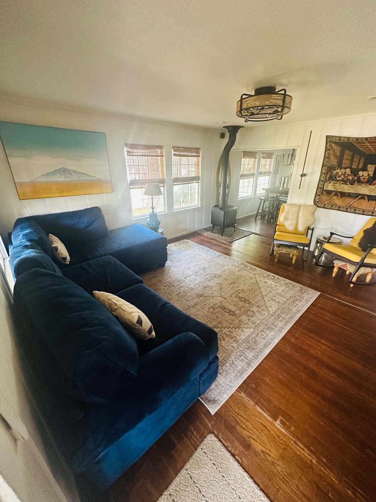Tranquilla posizione di campagna su cinque acri, ma a soli quattro chilometri dalla città. Tanta privacy, ma gli host vivono nella proprietà a una chiamata o a un messaggio di distanza. Il tavolo della sala da pranzo può facilmente ospitare 8 persone per i pasti e per giocare a carte o con i giochi che abbiamo a disposizione. La struttura dispone di una cucina completamente attrezzata; in alternativa, puoi utilizzare il barbecue a gas e mangiare all'aperto nel patio privato circondato da pini alti, osservando e ascoltando la natura. Abbiamo anche un braciere per godersi una calda serata all'aperto.
