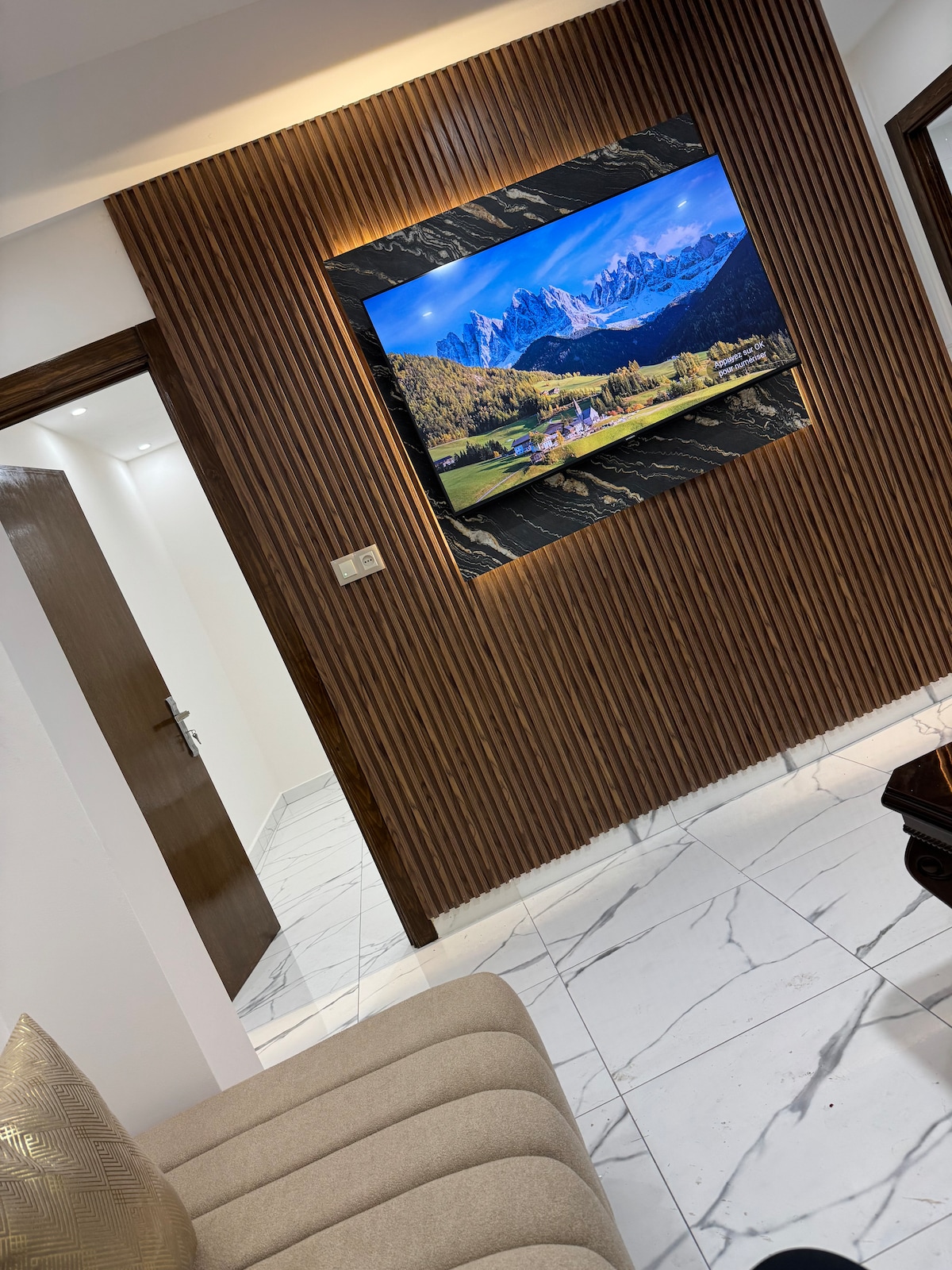 - Questa proprietà situata a Nador eljadid -Airport Nador 20 km -Mousqué MOHAMED da 6 a 200m -Caffè /Ristorante Mina rosita a due passi -Mini-mercato a 100m 2 ampie camere da letto con scomparti portaoggetti Armadi con cassaforte - Lettino per bambini aggiuntivo disponibile -2 ascensori/Parcheggio privato 6 -TV collegata CON WIFI - Netflix / prime Video ( ibo player ) Altre osservazioni ⚠️ Il regolamento interno vieta di fumare e feste in casa. ❌ Le coppie non sposate non sono autorizzate