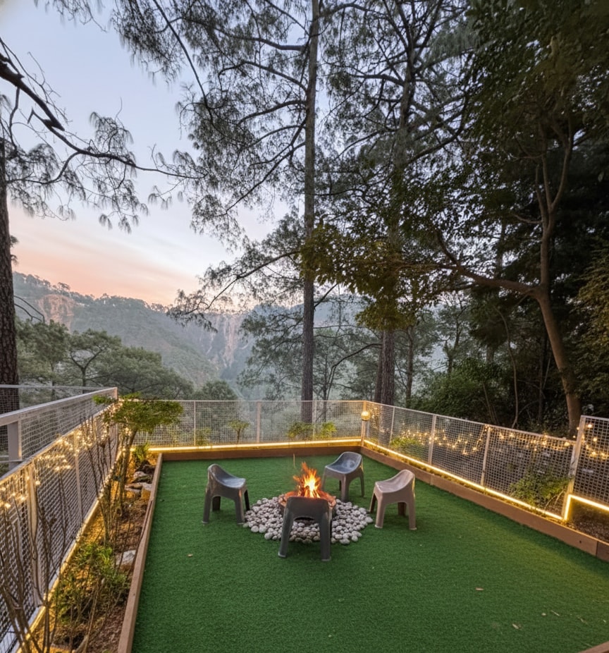Oasis Kainchi Dham : Balcony | Bonfire | Cook