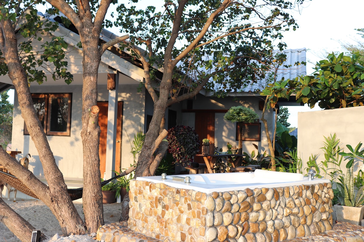 Goditi l'avventura di soggiornare in semplici bungalow di bambù in stile thailandese sulla nostra spiaggia privata di 1,5 km, circondata da colline nella giungla e spesso visitate dai delfini rosa. Culla per dormire con le onde del mare e vivere l'avventura di essere immersi nell'autentica cultura thailandese. Esplora le grotte, le cascate e i templi buddisti segreti nelle vicinanze. Potresti anche scegliere di allenarti con un autentico maestro di Muay Boran che possiede il campo e insegna arti marziali thailandesi. Ban Bang Rajan in thailandese significa Warrior 's Village.