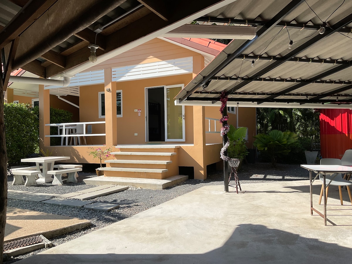 Situato nel centro di Donsak, c'è la natura che circonda la proprietà. Tranquillo e adatto per rilassarsi. Il wifi è forte per il lavoro dei turisti. Vicino al molo di Koh Tao, Koh Phalay, Koh Samui e Koh Phangan. Pedala gratuitamente per la città. Ci sono frutti di mare freschi ed economici.