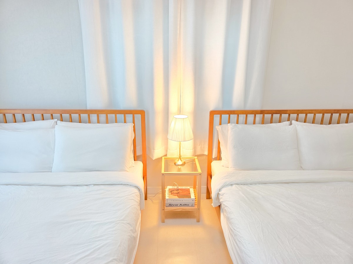 🔘 조리가 가능한 숙소입니다.(인덕션 사용 가능) 🔘 건물 내 무료주차(지하주차)입니다. 🔘 밤10시이후 소음이 발생하지 않도록 해주세요. 🔘 얼리체크인이나 레이트체크아웃은 당일 요청은 불가하며 원하실 경우 최소 1일전 요청해주시고 1시간당 2만원 부담하셔야 합니다. 만약 호스트의 동의가 없는 당일 얼리체크인이나 당일 레이트체크아웃이 발생할 경우 1시간당 5만원의 비용이 추가되니 이점 꼭 숙지해주시길 부탁드립니다. ❤️숙소❤️ ✔️침실 : 퀸사이즈 침대2개, 더블사이즈 침대1개, 에어컨 ✔️주방 : 세탁기, 냉장고, 커피포트, 식기류, 와인잔, 세제, 그릇, 냄비, 수저세트 ✔️거실 : 3인용소파, TV, 테이블 등 ✔️욕실 : 칫솔, 치약, 핸드워시, 폼클렌징, 바디워시, 샴푸, 린스, 드라이기, 수건, 빗, 면봉