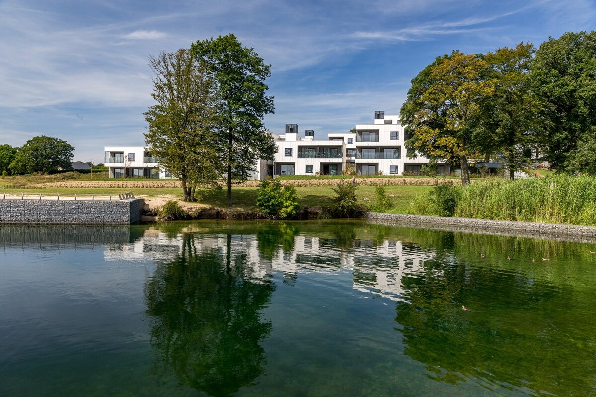 Situata all'interno del Golden Lakes Hotel presso i laghi dell'Eau d'Heure, questa camera matrimoniale dispone di letto king size, bagno privato con cabina doccia e terrazza con vista sul lago della Plate Taille.