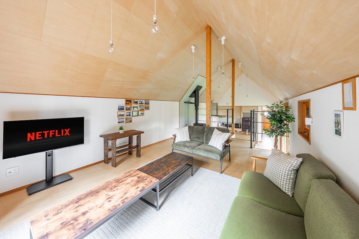 函館近郊の大沼公園駅徒歩5分「エルドラド」大人数でも快適/暖炉がある吹き抜けリビング&ダイニング