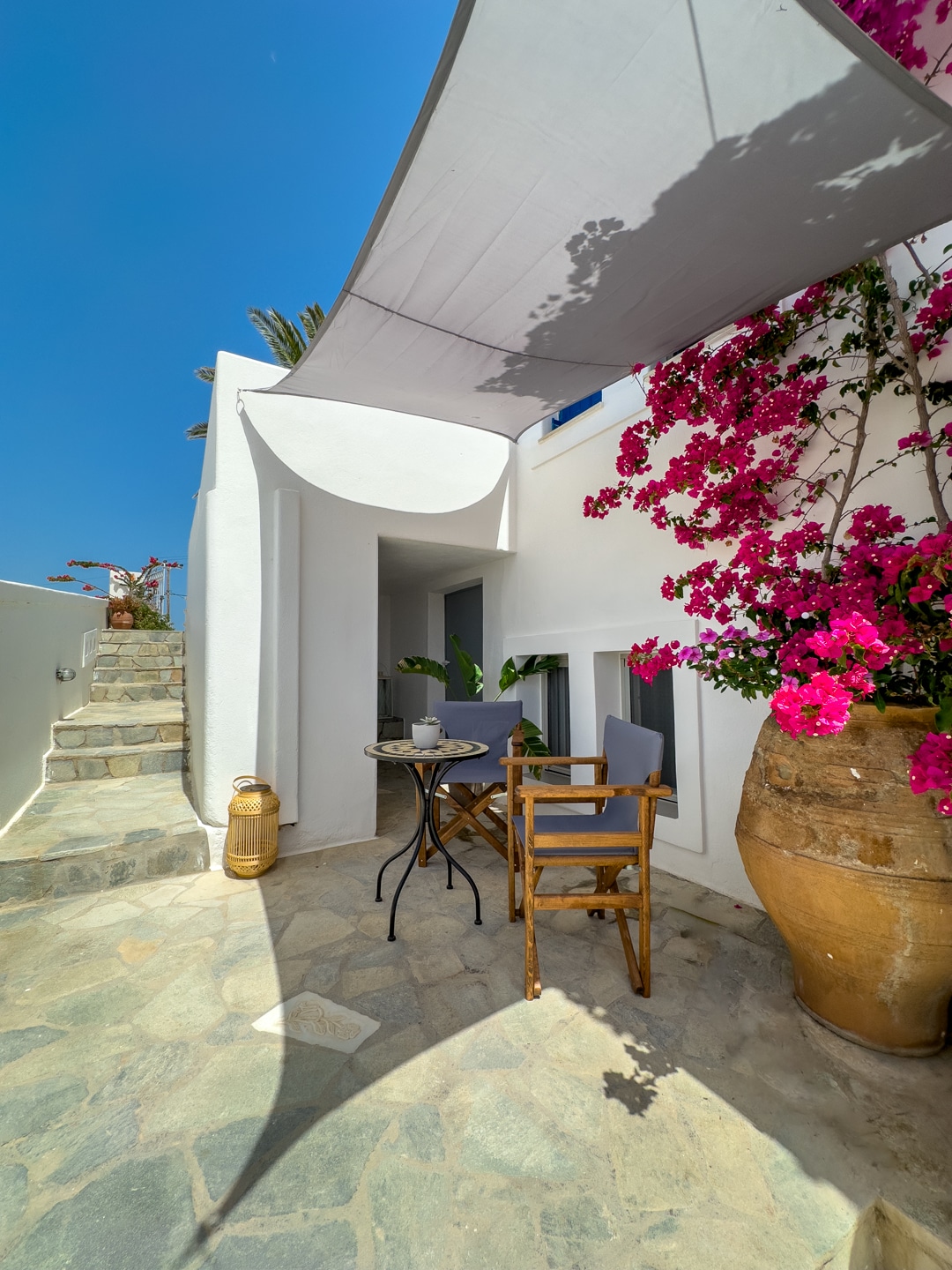 Thalassa si trova in una posizione ideale a 500 metri da Naousa offrendo tranquillità e grande vicinanza al paese. Le sue viste uniche sul golfo di Naousa sono impareggiabili. Situato al 1 ° piano, con ampie terrazze, offre un'opportunità unica per cenare all'aperto, prendere il sole e rilassarsi. I voti Whitestay per la sostenibilità offrono ora una piccola flotta di Citroen AMI completamente elettrici esclusivi ai nostri ospiti a prezzi molto competitivi.