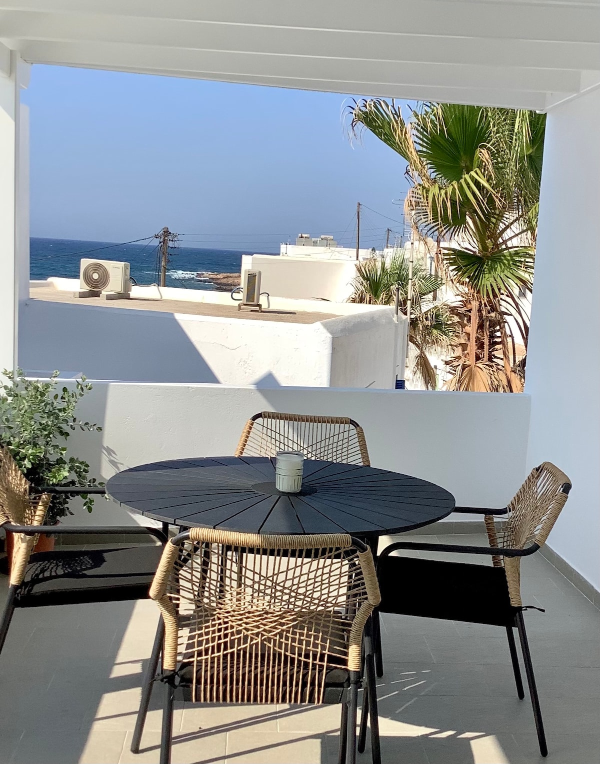 Apri le persiane blu mare e lascia entrare la brezza rinfrescante, poi prepara uno spuntino sul piano di lavoro della cucina in cemento urbano in un rifugio ventilato sul lungomare. Sali sulla spaziosa veranda alberata per sorseggiare un drink al tramonto con vista incontrastata sull'oceano! L'appartamento si trova vicino a una spiaggia sabbiosa, dove potrai fare una nuotata mattutina, e a 2 minuti a piedi dal centro di Naousa e dalla sua piazza principale. Negozi, ristoranti, bar e club sono raggiungibili a piedi, ma la zona è molto silenziosa e tranquilla!