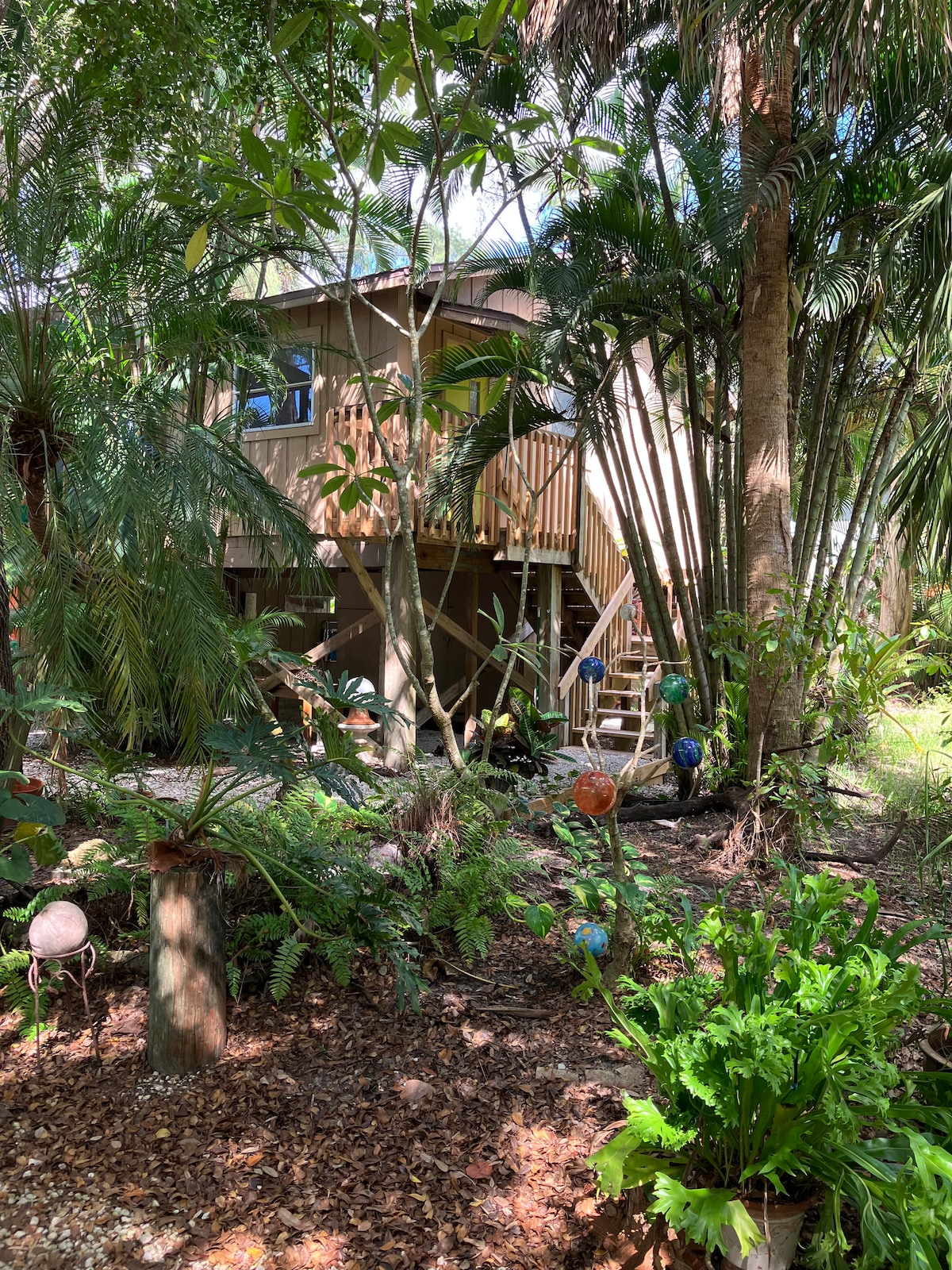 This Sunny House (1,200 sq ft) in a Lovely neighborhood has 1 spacious bedroom w Great King bed. Very Comfortable daybed in LR offers room for 3rd person or child (8 and above). Dining table for 4 outside on Huge Deck in Lush Surroundings w Cool breezes fr Naples Bay. Dining table inside as well. Well stocked kitchen. Small library w Art Books & more. FAST WiFi. Roku TV. Covered parking below. 1 mile to Downtown Naples - 2 miles to the Beach. Much nicer than any hotel !