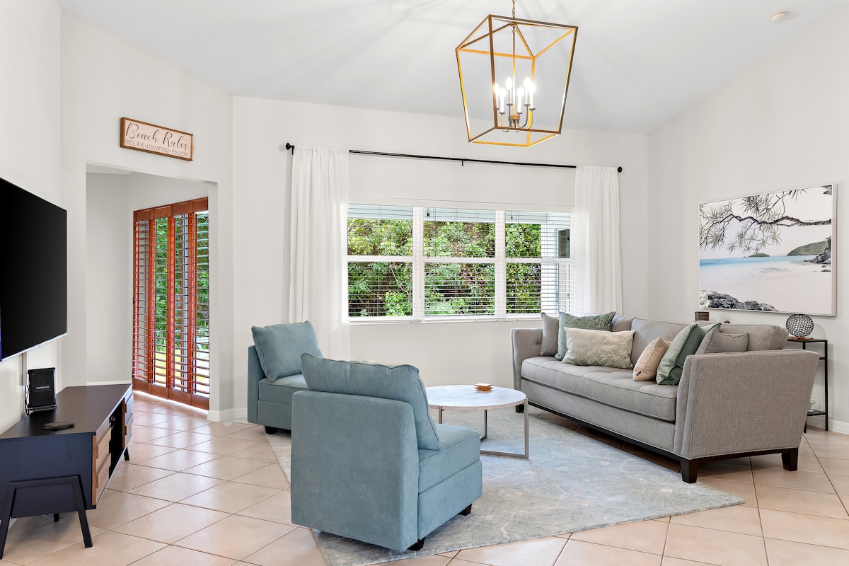 Luxury Naples retreat, 1 mile to Vanderbilt Beach! Completely renovated with high-end finishes, 3 premium king beds, 2 bathrooms, and an open living area. Unwind in the lanai, enjoy the yeah, brand new heated saltwater spa and pool, fire pit and backyard perfect for kids or games. 3 bikes perfect for exploring the scenic coastal paths and attractions. Ultimate comfort and relaxation! Local House Attendant on call during your stay!