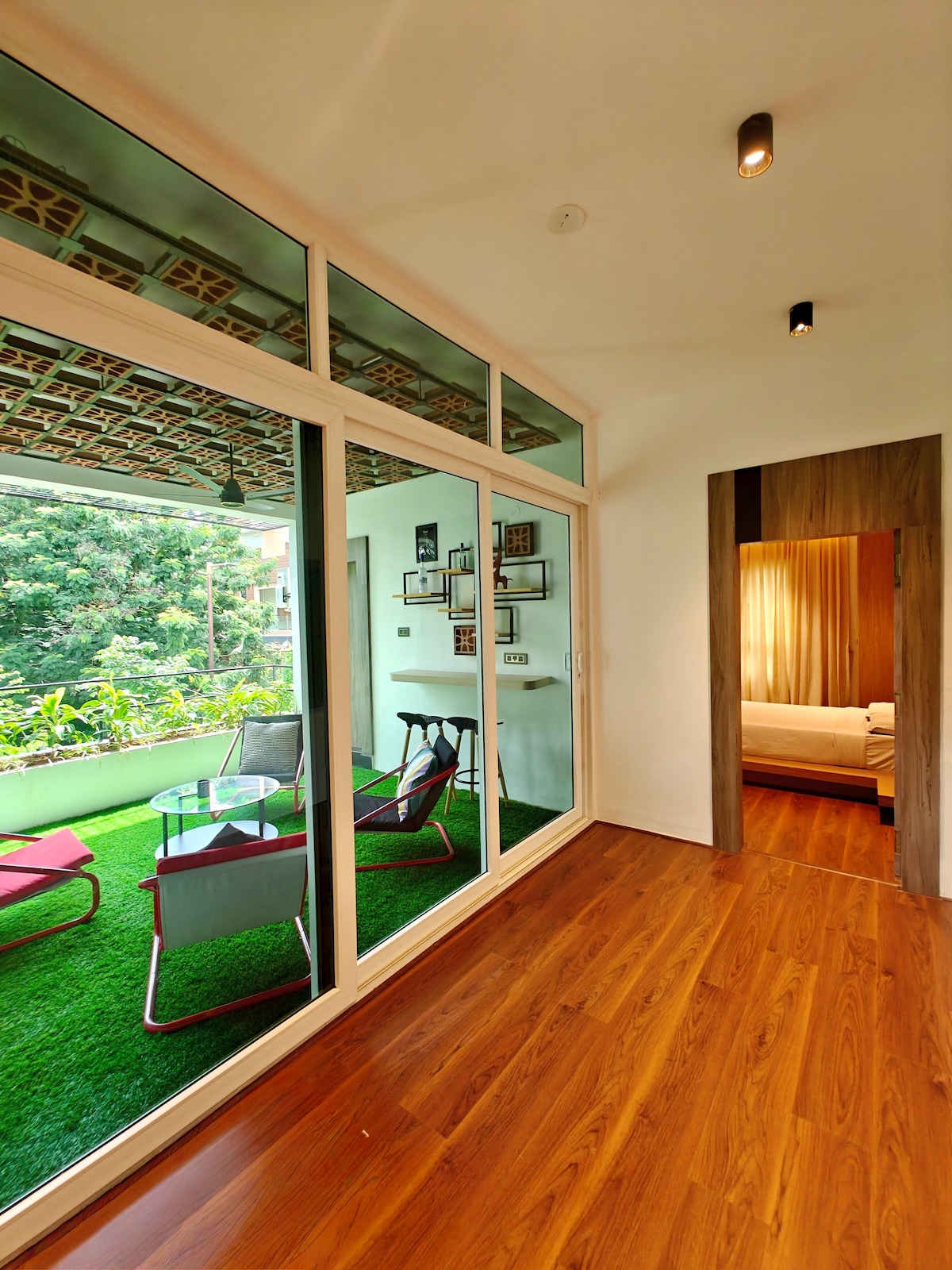 Benvenuti al Terrace Loft, un accogliente attico con 1 camera da letto e terrazza privata nel cuore di Gachibowli. Rilassati nel tuo giardino terrazzato privato o goditi una camera da letto accogliente, un bagno moderno, uno spazio di lavoro dedicato, aria condizionata e Wi-Fi. Perfetto per lavoro o svago, con bar, supermercati, parchi tecnologici e mezzi di trasporto a pochi minuti. Goditi il comfort, la privacy e la comodità di uno spazio accogliente, pensato appositamente per te.