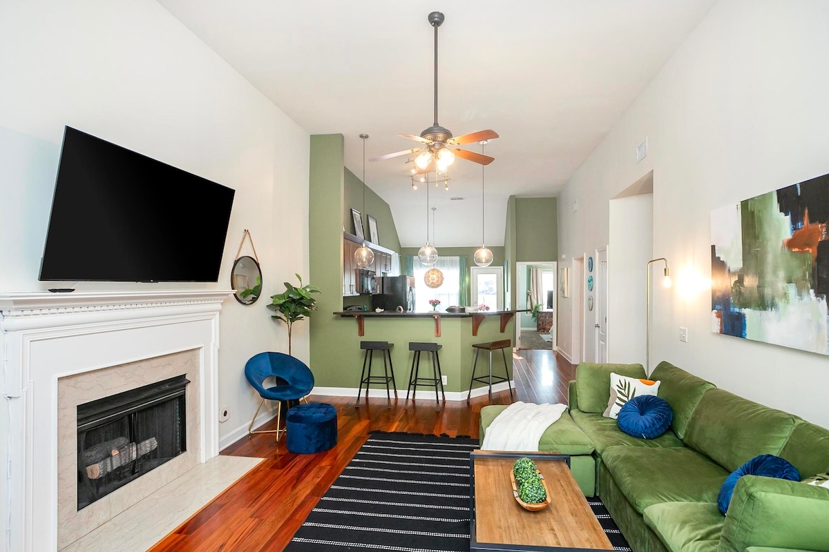 Ti diamo il benvenuto al Midtown Aria, il tuo lussuoso rifugio a Nashville, proprio accanto a Vanderbilt e Music Row! Questo moderno appartamento di ispirazione anni '50 è pensato per chi ama un mix di comfort di alto livello e l'energia di Nashville. Goditi un'elegante zona giorno con tocchi art déco, una cucina completamente attrezzata e un balcone con vista sulla città. Con una camera da letto matrimoniale, una camera doppia con letti singoli e due divani letto, questo spazio può ospitare comodamente fino a sette persone.