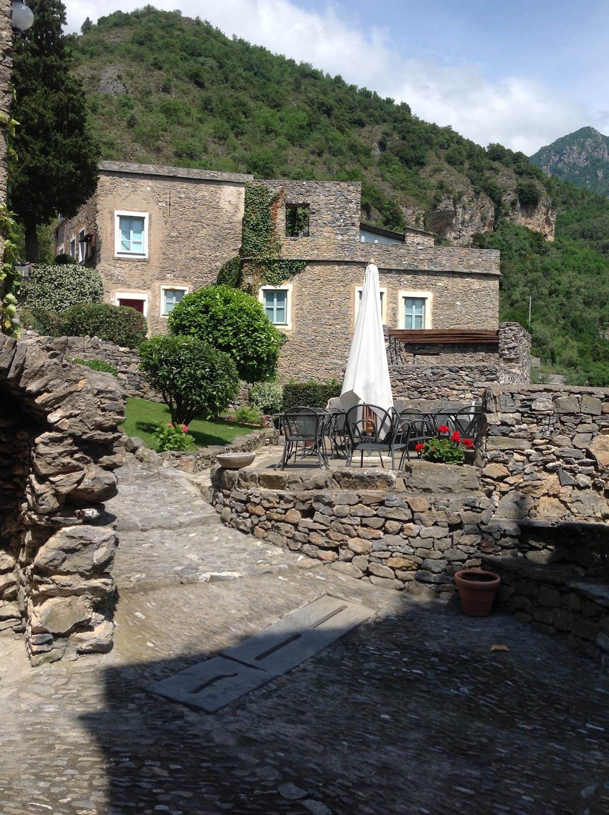 CASA VAL NEVA 🌞 • Villa in pietra di 240 mq • Terrazza panoramica di 100 mq con forno per pizza • in mezzo alle montagne, a 30 minuti di auto dalla spiaggia • 10 minuti dal fiume con piscine naturali • 5 camere da letto matrimoniali, 2 bagni • Soggiorno, sala da pranzo e seconda terrazza • ultima casa in strada con molta privacy e tranquillità • dolce ristorante del villaggio e negozio a 5 minuti a piedi (con panini freschi e focaccia ogni mattina) • Importante: la casa è raggiungibile solo a piedi (circa 300 metri dal parcheggio