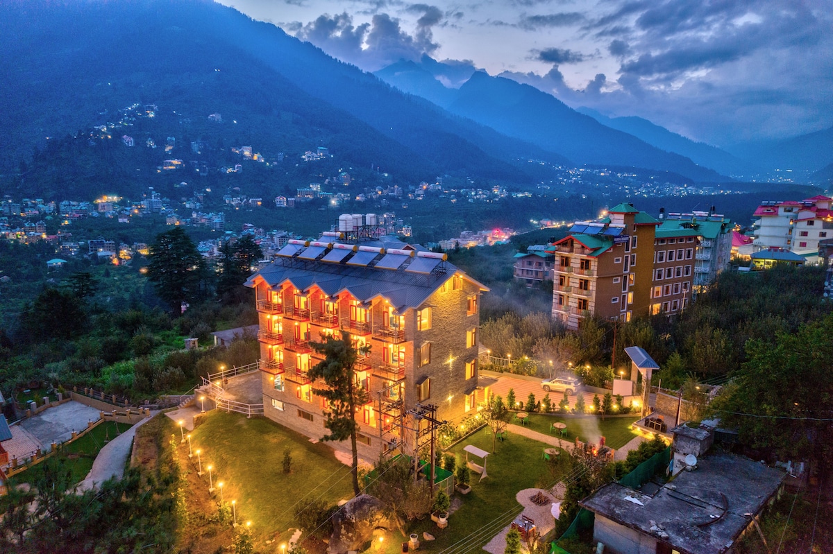 Nessun dettaglio è trascurato in questo alloggio incantevole e di lusso. Il resort è incastonato nella valle montuosa dell'Himalaya, circondata da splendide montagne innevate. situato in prini, una delle zone più eleganti a soli 3 km dalla strada del centro commerciale Manali. offre un'ottima combinazione di comfort,stile e sapori locali unici. Ci assicuriamo che ogni momento della tua vacanza sia magico e indimenticabile.