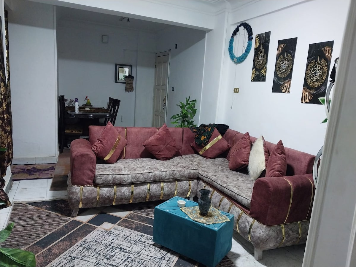 Goditi un soggiorno confortevole in questo appartamento con 2 camere da letto, soggiorno, cucina completamente attrezzata, 1 bagno e Wi-Fi veloce. Adatto sia per brevi che lunghi periodi. Luoghi nelle vicinanze: • A 20 minuti dall'aeroporto • 15 minuti dal centro di Almaza • 15 minuti per il City Stars Mall Una casa pratica e accogliente.
