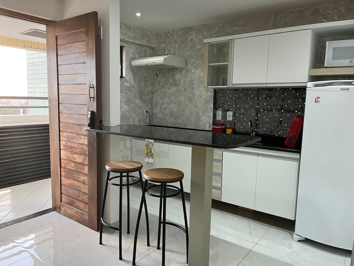 Acorde com uma vista espetacular para o mar no 6º andar do Paradise Flat! Apartamento completo e acolhedor, com cama king, ar-condicionado novo, Wi-Fi veloz, Smart TV e cozinha equipada. Ideal para descansar ou trabalhar com conforto. Piscina, sauna, limpeza inclusa e recepção 24h. Localização privilegiada, perto dos melhores restaurantes e comércios. Viva dias incríveis com praticidade, charme e segurança!