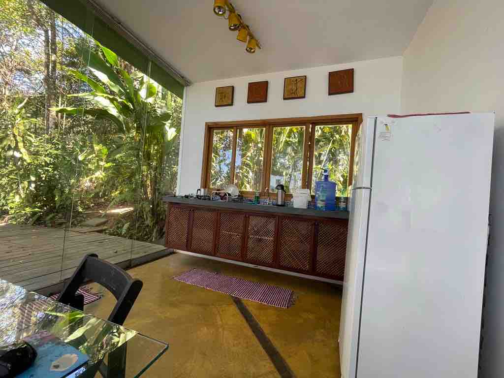 3 Chalés de vidro charmosos e rústicos em meio à Mata Atlântica cada um com seu acesso e deck privativo vista p/o mar.Cozinha equipada,wc e 1 quarto p/ até 4 pessoas. Fica no alto do morro a 350m da Praia da Fortaleza. Mar tranquilo de água esverdeada. Frequentada por casais, famílias e por praticantes de SUP. É famosa pelos peixinhos em suas piscinas naturais. Sai da Fortaleza a famosa trilha das 7 praias.Lugar p/ quem curte natureza e ñ se incomoda c insetos.