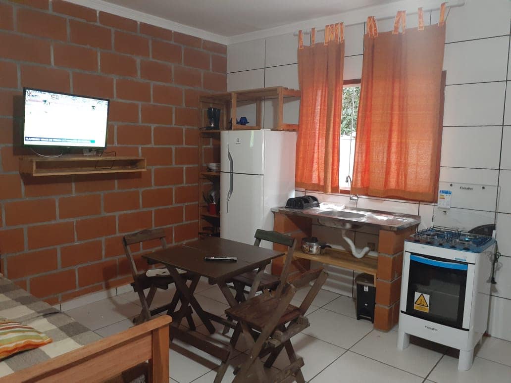 Nossos chalés estão localizados dentro de um condominio fechado com guarita e ronda 24 horas, mais tranquilidade e segurança para voce e sua familia. O condominio tem acesso exclusivo para pedestres irem a praia da cocanha. Todos nossos chalés com ar condicionado , cozinha equipada com utensilios basicos e churrasqueira individual. Muita natureza e tranquilidade para você e sua família. Reforçamos que não temos serviços como café da manhã , roupa de cama ,banho e travesseiros.