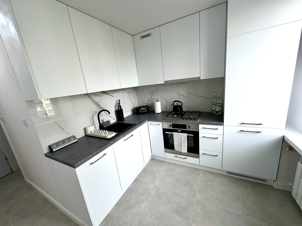Spacious, modern apartment with a huge living room, a big balcony and a view over the city, in the heart of Lodz, but in a calm and quiet neighbourhood, located in luxurious estate. Close to the vibrant main street of the city - Piotrkowska with many restaurants and clubs. Beautiful park, tennis courts, concert and event halls, Expo Lodz, a cinema and a shopping mall in the neighbourhood, walking distance from the apartment. Have a great time in Lodz!