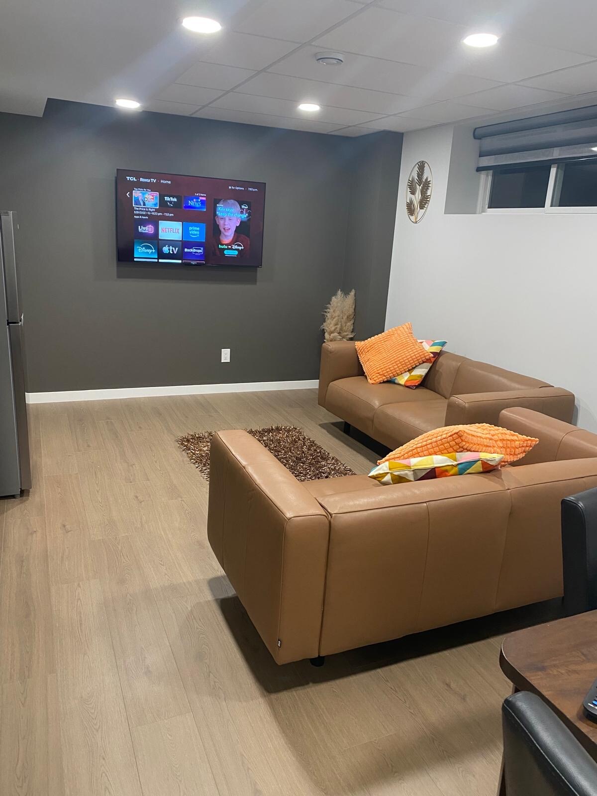 New Private built basement apartment has a functional kitchen which comes with a cooktop, fridge, microwave, kettle, coffee brewer, cutlery as well as basic cooking and serving utensils for your use. The room is with all the comfort of a home, queen and sofa beds that are warm and cozy for a perfect sleep. All rooms have Smart TVs. Fresh/clean towels are provided. It is located in the serene environment of the city with a functional Transit bus system. Parking spot available.