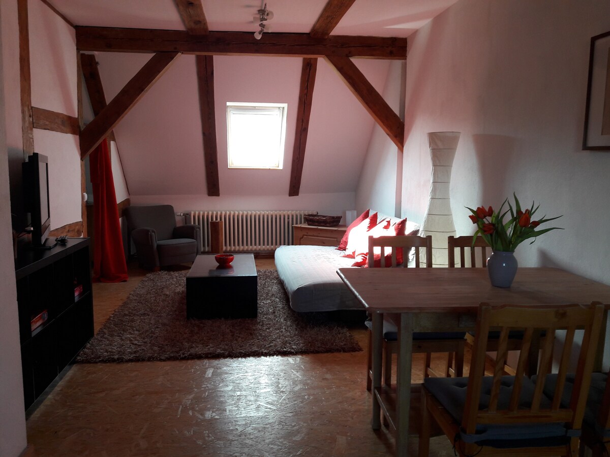 L'appartamento di alto livello per gli ospiti fa parte della nostra casa a schiera di nuova costruzione del 2016 e ha un ingresso indipendente. --> Monolocale spazioso --> Letto matrimoniale 180x200cm (massimo 2 persone, lenzuola incluse) --> Bagno privato (inclusi gli asciugamani) --> Cucina singola con piccolo frigorifero (incl. congelatore) e piastra di cottura, macchina del caffè --> A pochi passi dal centro città con tutti gli uffici, i negozi e l'Università