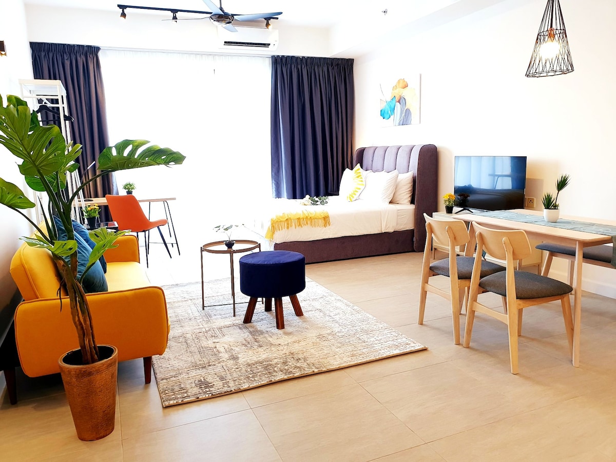 La residenza di📍 Pertama ti dà il benvenuto a Grey City! Questo monolocale è stato creato di recente con tanto amore, combina arredi contemporanei con servizi moderni e un'esperienza che tutto può godersi, in particolare il momento della vasca idromassaggio con il tuo amore e lo schermo del proiettore da 100"con Netflix. Questo posto unico ha uno stile tutto suo, offre un ambiente di soggiorno accogliente, pulito, tranquillo e rinfrescante per le coppie. Vieni a vivere la Grey City! A presto.