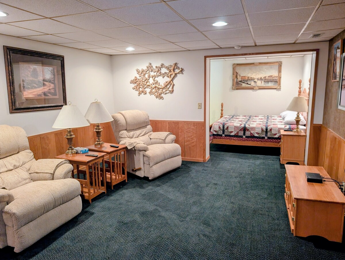Lo spazio è un seminterrato di 74 metri quadrati che è stato trasformato in un appartamento con due camere da letto, un bagno completo, una cucina e un soggiorno arredato. La zona giorno ha un proprio ingresso separato dalla parte superiore della casa, con parcheggio privato. Di solito c'è pochissima attività al piano superiore, quindi il rumore proveniente da lì non sarà un problema. Affittiamo anche per interruzioni alla Cooper Nuclear Station e per lavoratori a lungo termine del parco eolico.