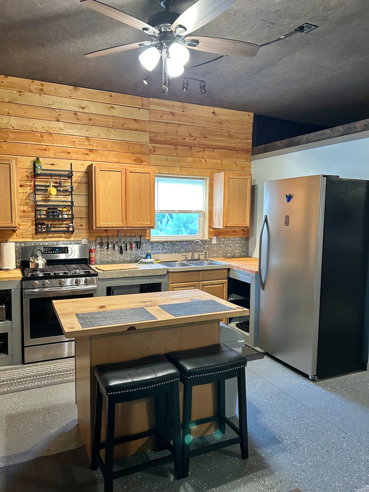 Vieni a vivere e goderti un soggiorno tranquillo nel fienile di lusso. Si trova su una proprietà separata dalla casa principale e ha anche una recinzione che blocca la vista dalla casa principale, con il tuo parcheggio privato. È a pianta aperta (monolocale) con bagno privato. Questo lussuoso fienile è riscaldato con calore radiante a pavimento ed è sempre caldo e accogliente. Goditi una cucina completamente funzionale, un divano reclinabile, una TV da 70"e il WIFI e un letto matrimoniale. Vieni a goderti un soggiorno al Luxury Barn.