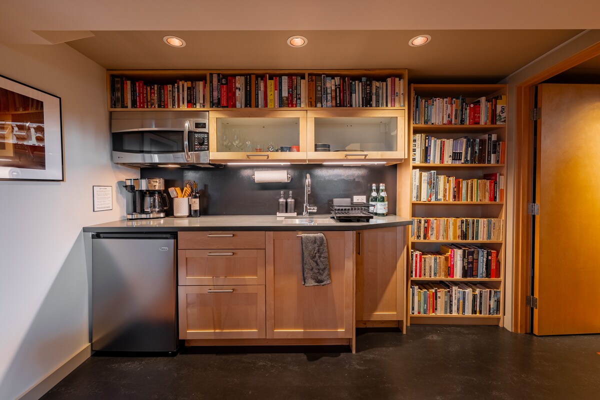 Delizia i tuoi sensi in questo spazio di design open space in stile hotel, impeccabile e con quasi 600 recensioni a cinque stelle. Grande vasca da bagno, rilassante camino elettrico, cucina professionale, postazione di lavoro remota e patio coperto. * Questa unità si trova al piano inferiore della nostra casa (ma è un'abitazione completamente separata). Aspettati di sentire attività familiari quotidiane sopra di te, come camminare e parlare. Se i normali rumori domestici ti disturbano, ti preghiamo di non prenotare questo alloggio. * Non sono ammessi bambini di età inferiore a 12 anni
