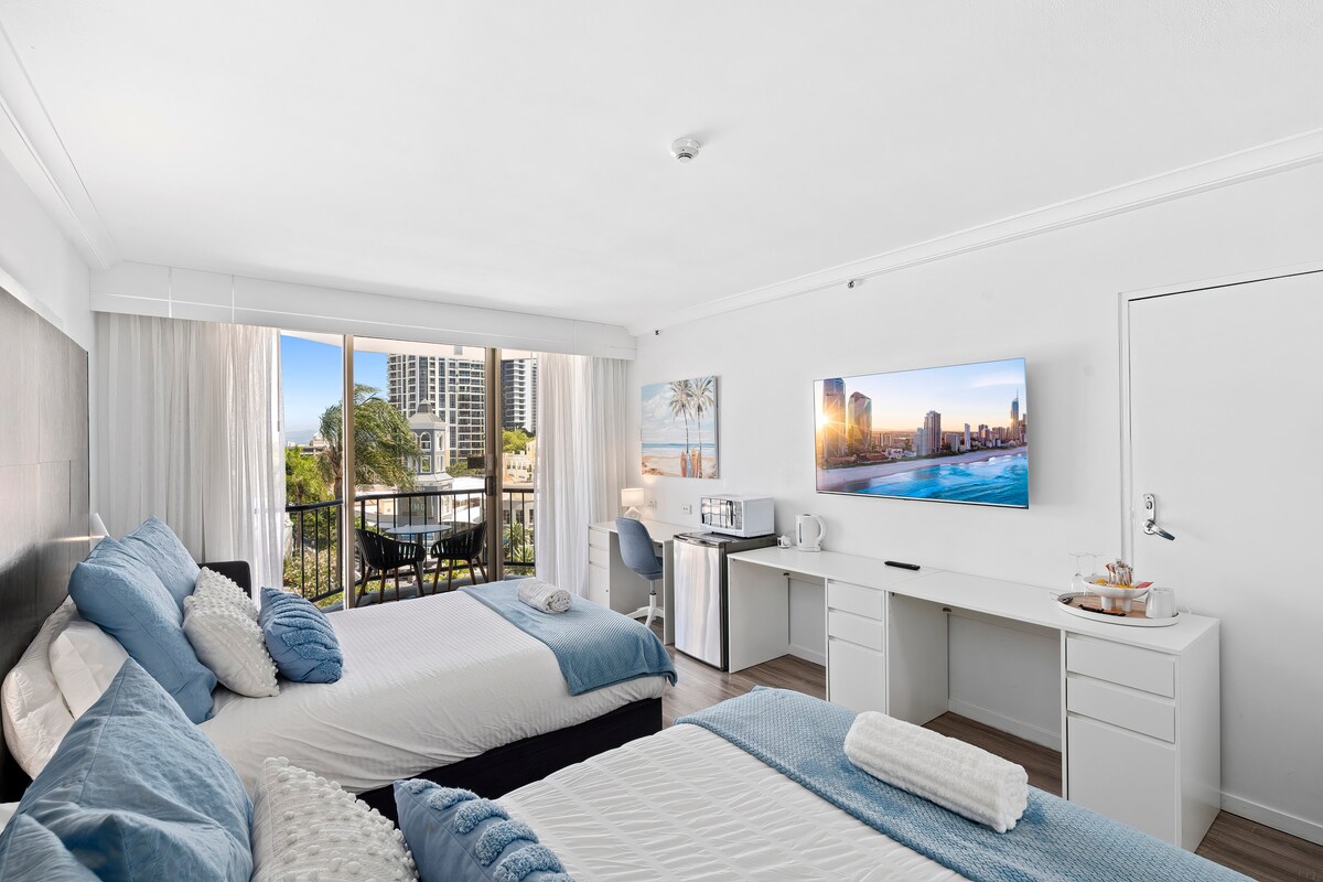 Benvenuti nel nostro monolocale al piano terra con 1 camera da letto, completo di letto queen-size, cucina completa e Wi-Fi. Gli amanti degli animali domestici si rallegrino: siamo dog friendly (si applicano le regole della casa)! Rilassati nel tuo patio esterno privato o approfitta dei servizi del resort, tra cui piscine, spa e palestra, tutti con vista sul fiume. Il parcheggio a pagamento è comodamente disponibile con le tariffe fornite nei dettagli della prenotazione. Con il tram, Cavil Av e la spiaggia a soli 10 minuti di distanza, sei nella posizione ideale per vivere Surfers Paradise!