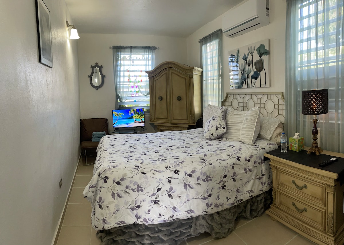 Rilassati e riposati nel tuo comodo letto king size e nella camera climatizzata dopo una giornata trascorsa alla scoperta di St. Croix. A differenza della maggior parte delle proprietà, questo appartamento completamente ristrutturato è la perfetta combinazione di comfort ed eleganza. Avrai a disposizione una cucina gourmet completamente nuova. Potrai goderti la brezza tropicale sulle sedie a dondolo sul balcone o rilassarti in piscina! Situato in posizione strategica nel cuore di St. Croix, per un facile accesso a negozi, ristoranti, casinò e spiagge incontaminate a breve distanza in auto.