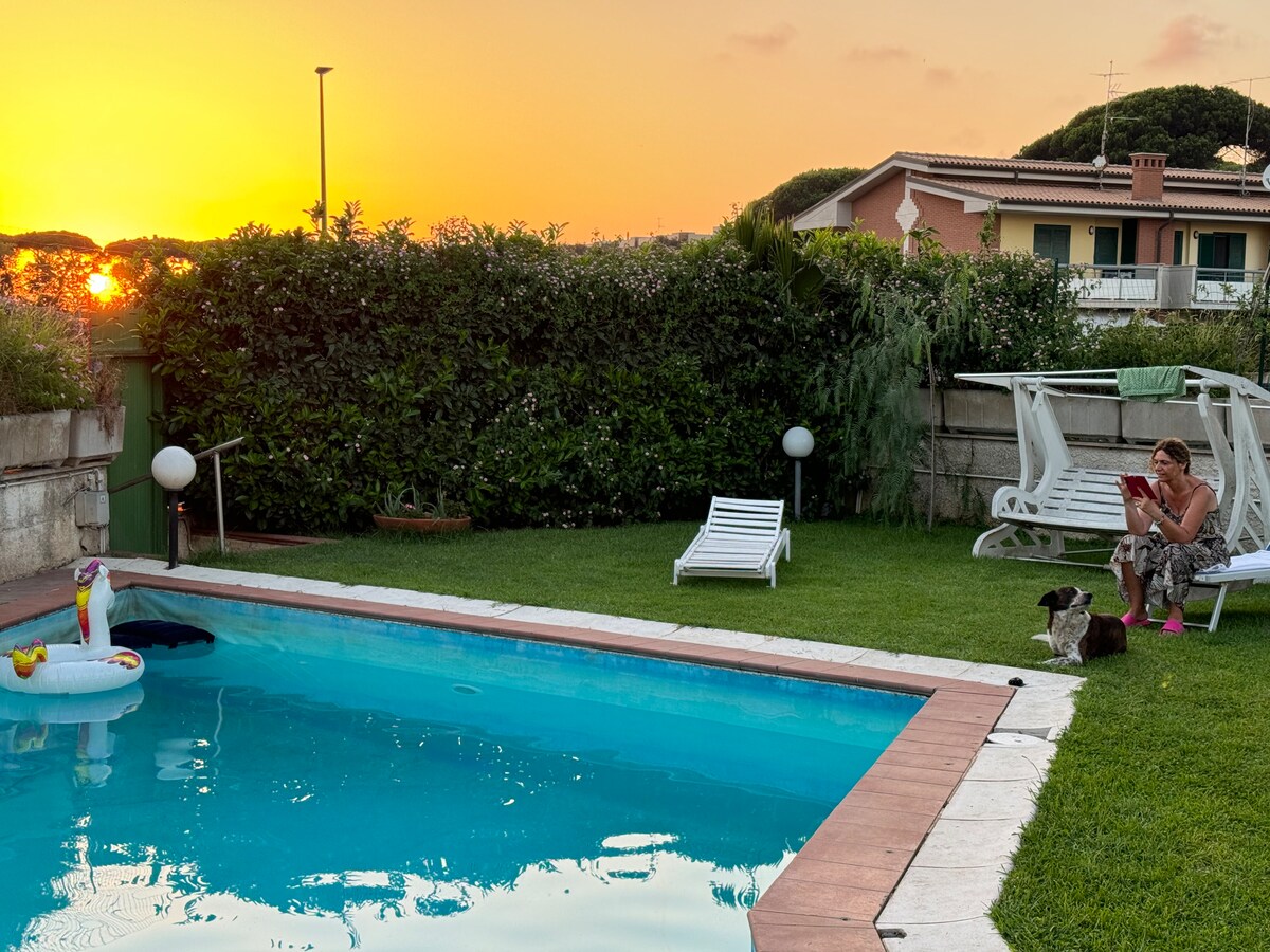 Villetta nel Verde tra Mare e Aeroporto 🏡 Casa autonoma con patio, BBQ e grande giardino. 🌿 ✨ Comfort & Lavoro: • Wi-Fi veloce per Smart Working • Aria condizionata nelle 2 camere (estate) • Riscaldamento autonomo (inverno) • Animali benvenuti 🐾 📍 Distanze: • Mare, Aeroporto FCO e Ostia Antica: 5 km • Parcheggio privato gratuito interno 🚗 • Bus per FCO a 500m; Ristoranti a 600m ⚠️ Tassa soggiorno: 3,5€ pers/notte da pagare al check-in o check-out. Esenti minori di 10 e over 70.