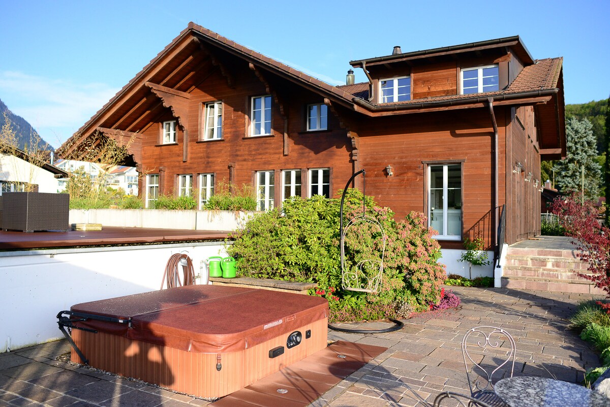 Land Luxury è un grande appartamento di 5 ½ locali (156 m²) con grande cucina e soggiorno. Grande terrazza (40m²) con grande barbecue proprio di fronte all'appartamento. Posizione molto tranquilla ma molto vicino a Thun 8 km e Berna 31 km. Interlaken 37 km, Grindelwald 56 km, Lucerna 83 km A disposizione degli ospiti anche la piscina, il bar a bordo piscina, il campo da bocce, la doccia vicino alla piscina e la sauna. L'ospite ha tutto l'appartamento tutto per sé.