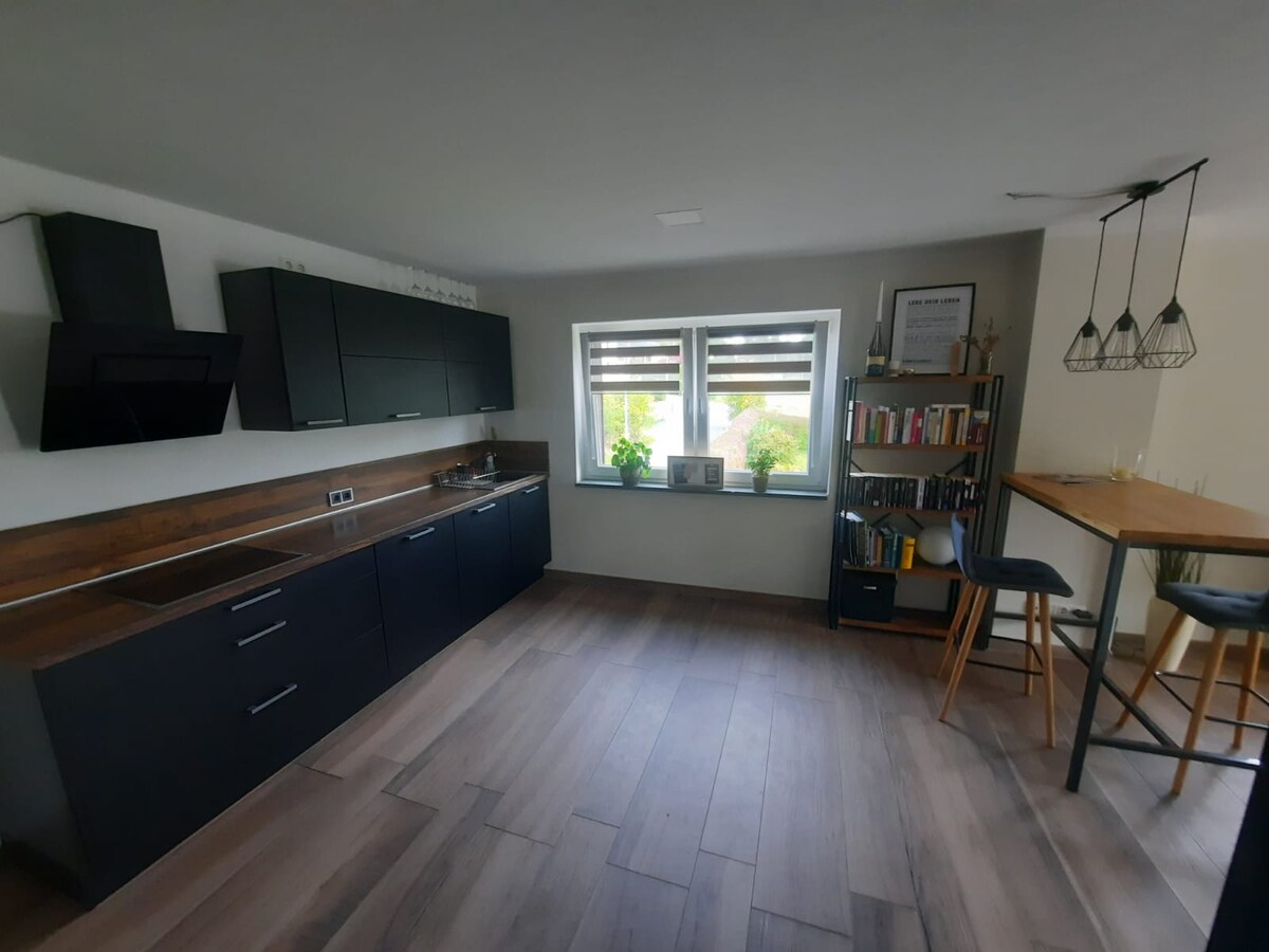 L'appartamento si trova a Ponitz, vicino al castello rinascimentale di Ponitz. Troverai un appartamento di tre camere in una storica casa del mulino. Può essere utilizzato da 2, 3 o 4 persone. Nel soggiorno c'è una galleria con due letti e, se necessario, aggiungiamo un letto per tre persone. Al piano di sotto c'è un letto per la quarta persona. È disponibile un lettino per i bambini più piccoli. La cucina è ben attrezzata ma non c'è il forno (solo i fornelli) e non c'è la TV (ma c'è il wifi). Troverai un bagno con doccia, asciugacapelli e asciugamani. È disponibile un parcheggio.