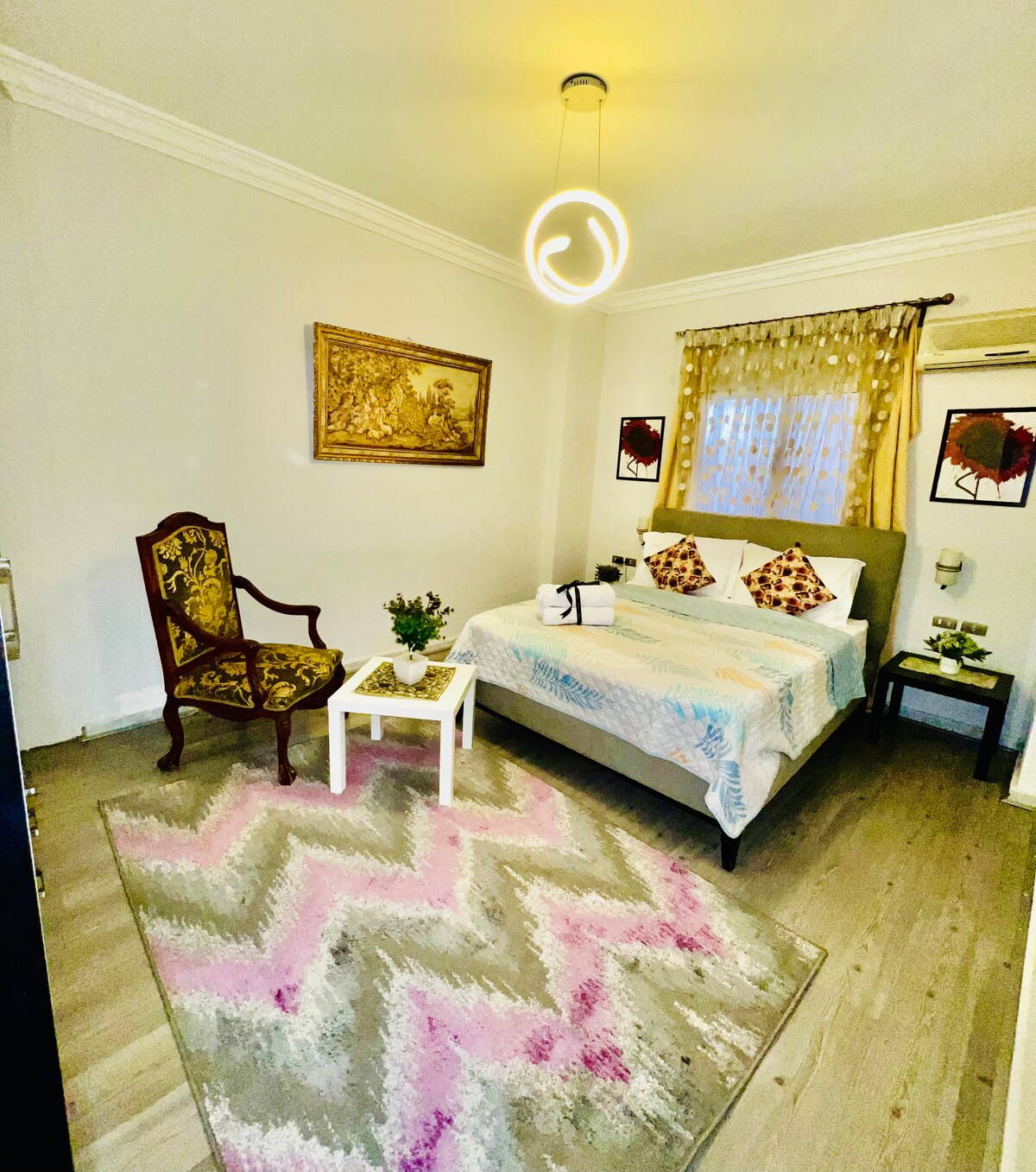 Un appartamento molto moderno nella via più prestigiosa di Mohandessin . Accanto alle ambasciate è caratterizzato dalla calma e l'appartamento dispone di tutti gli elettrodomestici.
