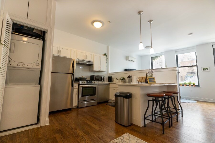 Benvenuti in questo splendido appartamento a pianta aperta, illuminato da luce naturale. Situato nel cuore del quartiere centrale degli affari di Newark. A meno di 5 minuti a piedi dal centro NJPAC/Prudential! L'appartamento è anche comodamente situato vicino alla stazione di New Jersey Transit Penn Station. New York City dista meno di 30 minuti! Non solo la posizione è eccellente, ma l'unità è completamente attrezzata per qualsiasi esigenza di viaggio, offrendoti una casa lontano da casa e un'esperienza elegante in questo spazio in centro.