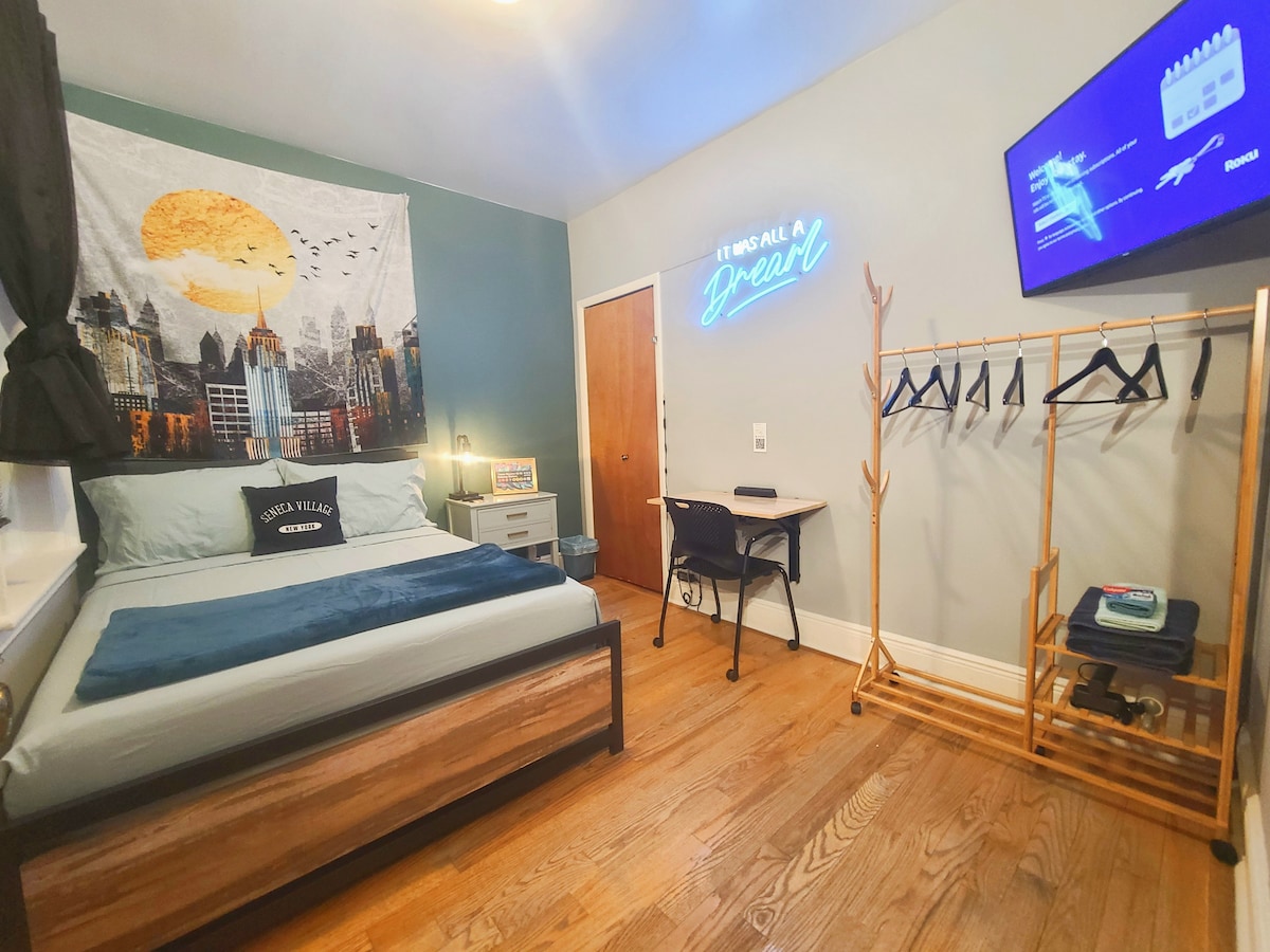 🗽 Elegante appartamento privato a soli 10-15 minuti da Times Square, in un quartiere sicuro e vivace del New Jersey con accesso agli autobus 24 ore su 24, 7 giorni su 7 (Transit Score: 98). Può ospitare 2 persone. 🛎️ Facile self check-in 💸 Soggiorno economico a New York Adatti al lavoro da💻 remoto: -- Wi-Fi a oltre ⚡ 300 Mbps -- ☕ Caffè fornito -- 🪑 Tavolo + sedia spazio di lavoro in cucina Cucina ✅ completa + Smart TV 🛏️ Letto a due piazze + servizi essenziali Vivi New York con comfort, comodità e un tocco di fascino locale!