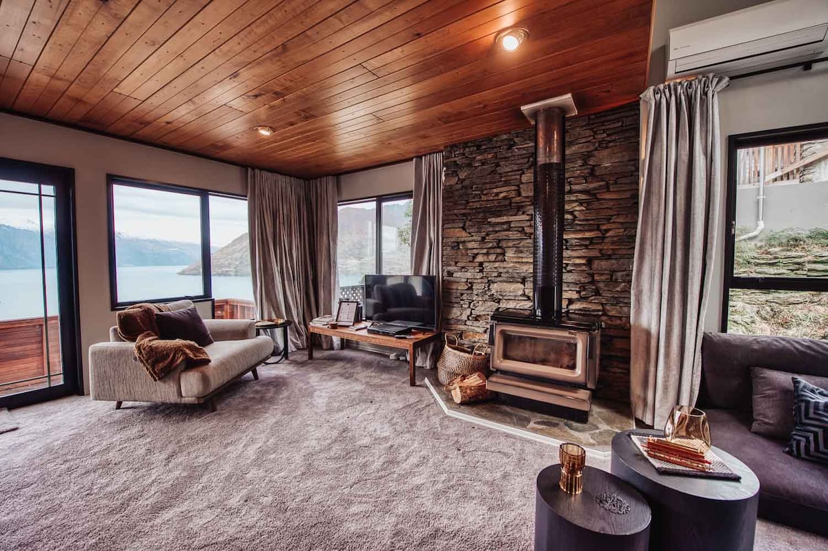 Lakehouse 4 – Vista lago, parcheggio e camino Villa di lusso su due livelli a soli tre minuti dal centro di Queenstown, con ampie viste sul lago Wakatipu e sui Remarkables da ogni livello. Rilassati sul balcone privato o nell'area esterna soleggiata con accesso diretto al lago. I servizi includono un accogliente caminetto, parcheggio gratuito e soggiorno luminoso: la base estiva perfetta per tour enologici, avventure sul lago, piste ciclabili, golf e la vivace scena culinaria di Queenstown.