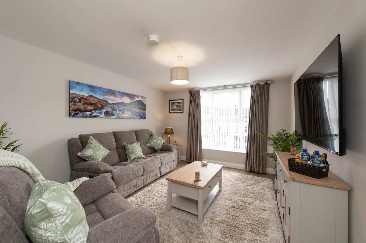 Un moderno appartamento con tre camere da letto, situato in una posizione perfetta nel cuore di Newcastle, nella contea di Down. Svegliati con una vista mozzafiato sui monti di Mourne, a pochi minuti dal lungomare, dalla spiaggia, dai bar e dai ristoranti locali. Situato in posizione comoda appena fuori dalla strada principale, con parcheggio privato incluso. Recentemente ristrutturato e perfetto per una fuga romantica, una vacanza in famiglia al mare o un'avventura all'aria aperta, il nostro appartamento offre il mix ideale di comfort, comodità e fascino costiero.