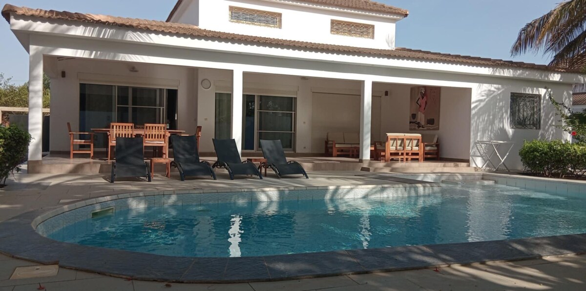 Casa con piscina e vasca idromassaggio a 60 m dalla spiaggia e a 2 km dalla laguna. Ideale per gite in bicicletta, passeggiate sulla spiaggia o feste in riva alla laguna per i più festaioli. Casa ideale con i bambini, tranquilla per riposare lontano dal trambusto e allo stesso tempo a 10 minuti dalla Somone e a 50 minuti da Dakar. Gli amanti della natura potranno immergersi nella vegetazione lussureggiante della mangrovia e i più romantici contemplare bellissimi tramonti sulla spiaggia