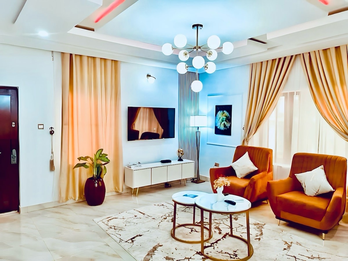 Il nostro appartamento è unico, spazioso, adatto alle famiglie e ben arredato, situato in una tenuta asfaltata, sicura e recintata ad Abuja. La zona è facilmente accessibile da qualsiasi luogo tu voglia esplorare ad Abuja. Molto vicino all'autostrada, senza problemi di traffico all'interno della zona. I dintorni sono splendidi, con architetture e case uniche. I servizi dell'appartamento includono fornitura di energia elettrica 24 ore su 24, 7 giorni su 7, internet veloce in fibra ottica, Netflix, acqua pulita, servizio di pulizia giornaliero, ping pong, aria condizionata, smart TV e pace.