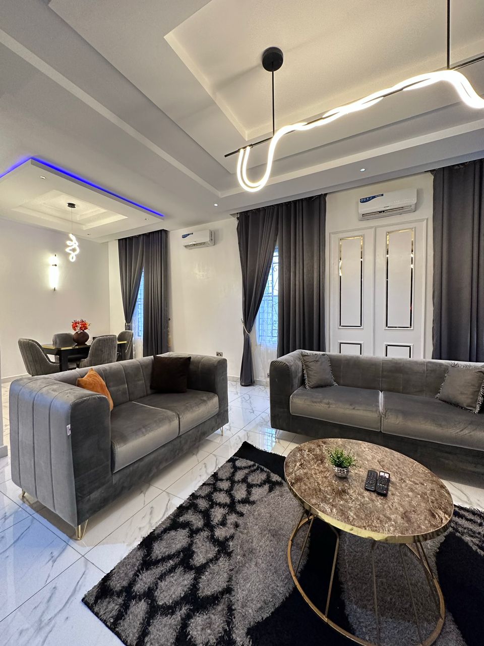 Welcome to your luxurious home away from home in the heart of Abuja! Nestled in a serene neighborhood, this stylish 3-bedroom house offers the perfect blend of comfort and sophistication for your stay in Nigeria's vibrant capital city.