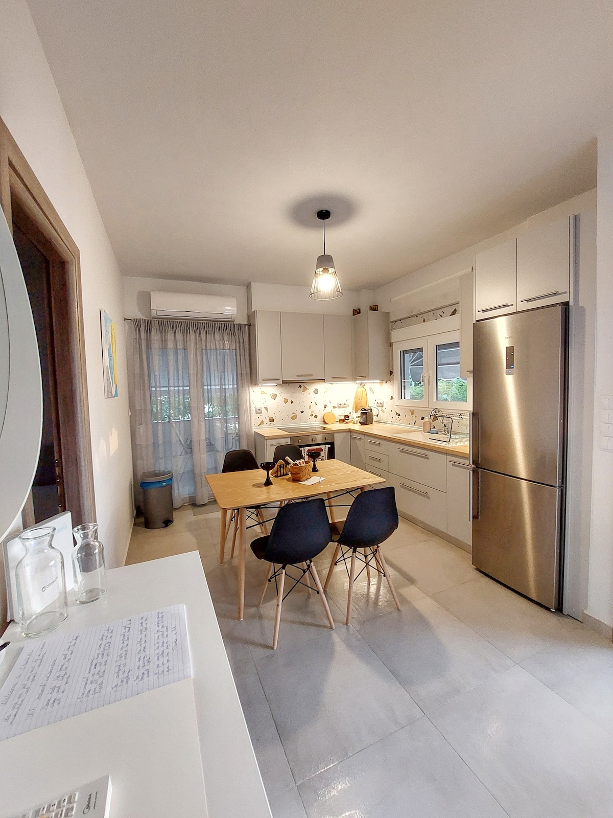 SithoniaRS Mercer Luxury Maisonette – Modern Comfort Near the Sea. Located in the charming village of Nikiti, SithoniaRS Mercer Luxury Maisonette offers the perfect blend of seaside convenience and peaceful retreat. Just a 3.5 to 4-minute walk (350 meters) from the beautiful Nikiti Beach, it’s close enough to enjoy the sand and sea at your leisure—yet far enough to provide a quiet and serene atmosphere, away from the beachfront buzz.