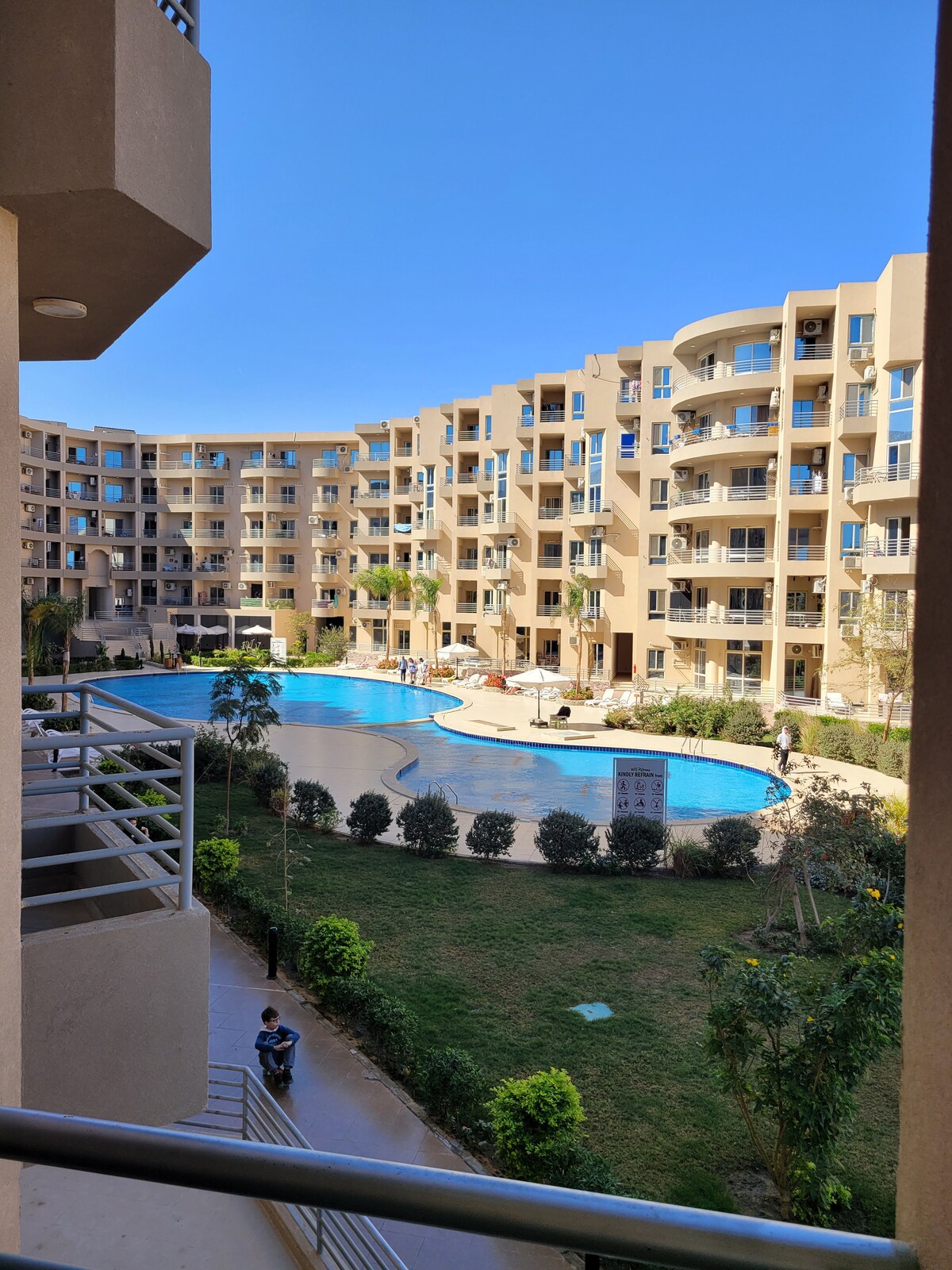 new wonderful ,quiet and fully equipped big appartment , in The View Resort, Hurghada. The right place for spend a quiet and comfortable holiday where you can wake up to the view of the beautiful sea and the wonderful swimming pool and enjoy spending a wonderful time in the private gardens in the compound. The apartment is very nice and suitable for big families or four guests Guests have access to the swimming pool and the beach. I am really sure that you will spend the best vacation ever.