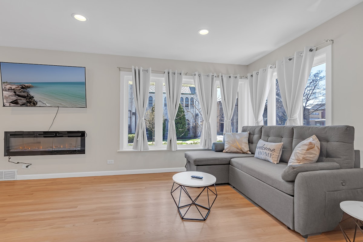 Rilassati e sentiti come a casa nell'appartamento al primo piano (completamente privato) del mio Chicago 2-Flat. Questa casa lontano da casa è ben fornita di tutto ciò di cui potresti aver bisogno, sia che tu stia soggiornando per 2 notti o 2 mesi. Ci sono 3 televisori con wifi e Netflix in tutto l'appartamento. C'è un bel cortile che puoi usare e il parcheggio in strada è gratuito. Lavatrice e asciugatrice sono disponibili nel seminterrato. Anche le autostrade e gli autobus sono nelle vicinanze.